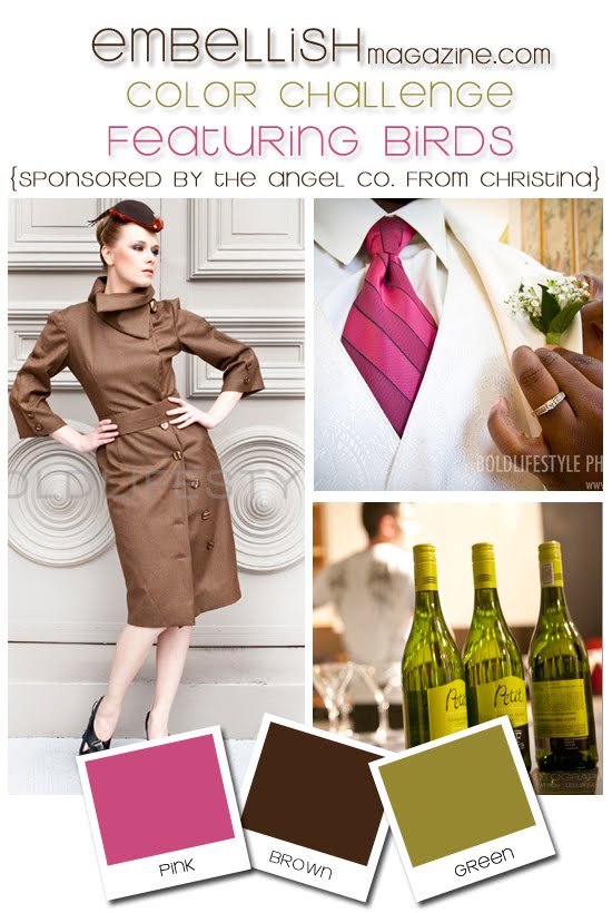 Embellish Color Challenge featuring Birds - hence the pink on my card (never my first choice) but it definitely adds a bright pop of color!