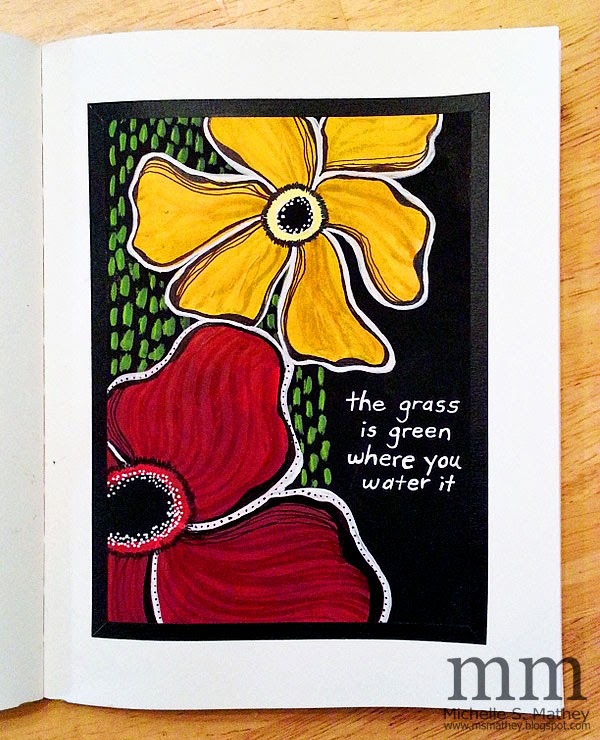 I tend to make a pencil sketch when I start a girl but apparently I make no attempts to stick to it when I am inking. The background is matte acrylic paint and her hair is shiny from the paint markers. Doesn't every girl want shiny hair??